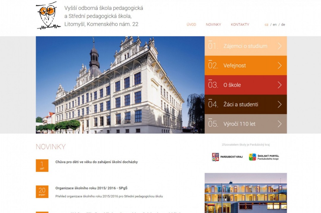 01.12.2015 - 08:03Dnes 1. 12. 2015 Pedagogická škola spustila nový web školy Staré webové stránky naleznete na tomto odkazu: old.vospspgs.cz